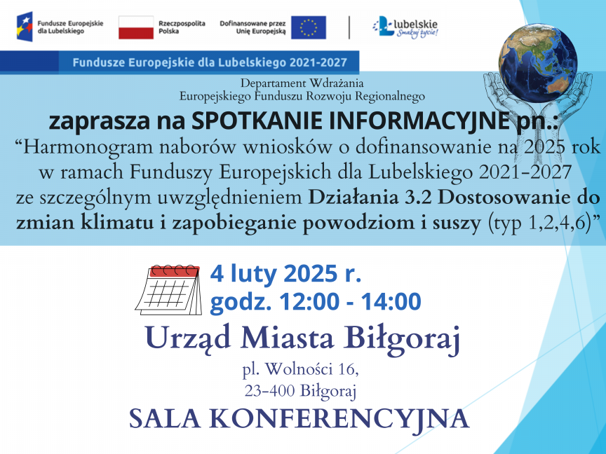 Spotkanie informacyjne dla potencjalnych wnioskodawców pn. „Harmonogram naborów wniosków o dofinansowanie na 2025 rok w ramach Funduszy Europejskich dla Lubelskiego 2021-2027" Biłgoraj