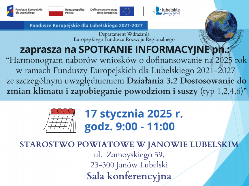 Spotkanie informacyjne dla potencjalnych wnioskodawców pn. „Harmonogram naborów wniosków o dofinansowanie na 2025 rok w ramach Funduszy Europejskich dla Lubelskiego 2021-2027