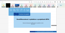 - Kwalifikowalności wydatków w ramach EFS + - najważniejsze uregulowania zawarte w Wytycznych dotyczących kwalifikowalności wydatków na lata 2021-2027,