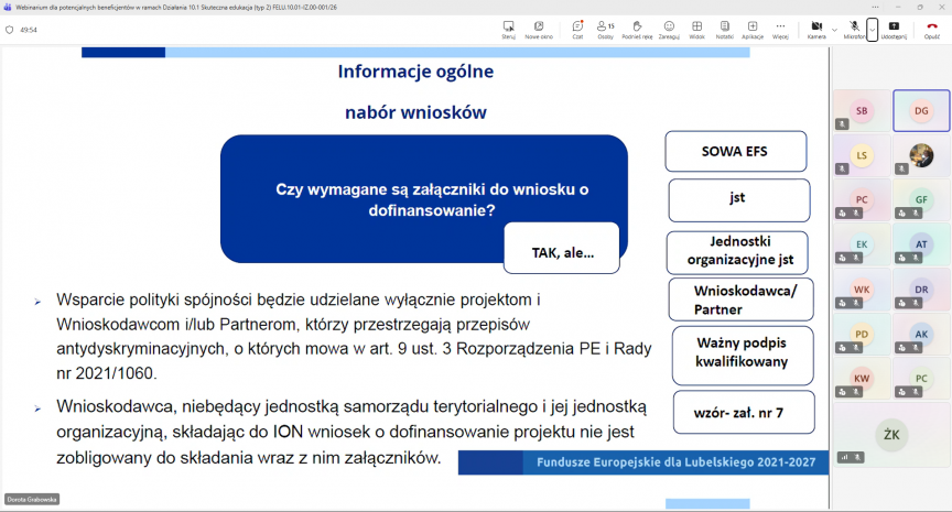 Departament Wdrażania Europejskiego Funduszu Społecznego (DW EFS) Urzędu Marszałkowskiego Województwa Lubelskiego w Lublinie, zorganizował w dniu 17.03.2026 r. Webinarium pn. „Aplikowanie o śropdki na dofinansowanie projektu w ramach naboru nr FELU.10.01-IZ.00-001/26 – Skuteczna edukacja”.