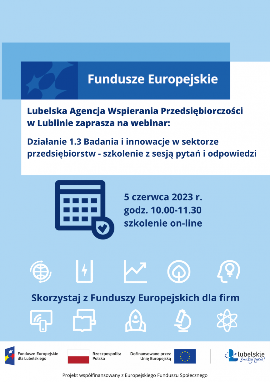 Webinar dla Wnioskodawców Działania 1.3 Badania i innowacje w sektorze przedsiębiorstw – 5.06.2023 r.