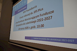 Jako pierwsze rozpoczęło się posiedzenie Grupy roboczej ds. Europejskiego Funduszu Społecznego Plus. Podczas spotkania zostały przedstawione propozycje zmiany kryteriów wyboru projektów dla Działania 8.5 Usługi społeczne (typ projektu nr 1e - wsparcie dla tworzenia lub funkcjonowania placówek świadczących usługi społeczne w społeczności lokalnej i ich usług, w tym CUS i typ projektu nr 5 - budowanie zdolności organizacji społeczeństwa obywatelskiego w zakresie działań wspierających usługi społeczne). Następnie członkowie grupy dyskutowali nad kryteriami wyboru projektów dla Działania 8.6 Usługi zdrowotne (typ projektu nr 1 - opracowanie i realizacja programów profilaktycznych dotyczących profilaktyki chorób będących istotnym problemem zdrowotnym regionu).