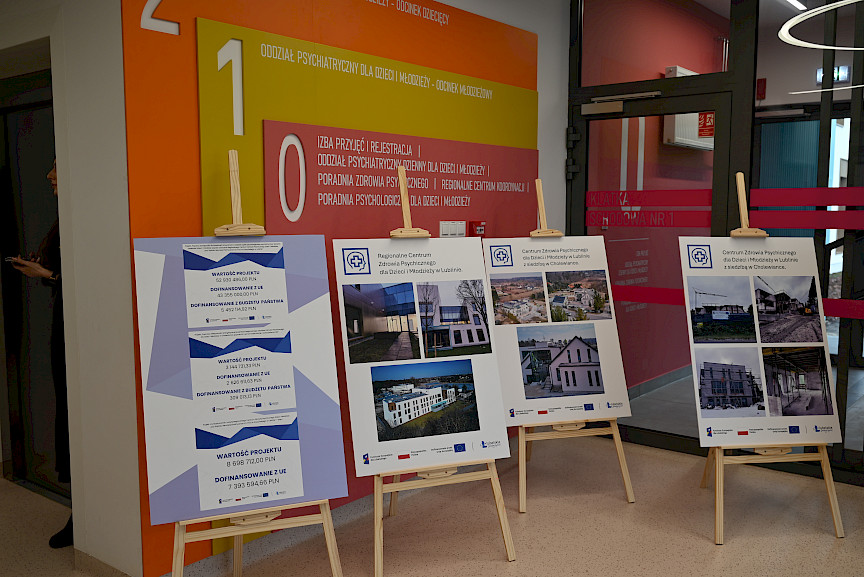 - Poprawa dostępności do świadczeń zdrowotnych w zakresie opieki psychologicznej, psychiatrycznej i leczenia uzależnień dzieci i młodzieży poprzez utworzenie Regionalnego Centrum Zdrowia Psychicznego Dzieci i Młodzieży przy Szpitalu Neuropsychiatrycznym im. Prof. M. Kaczyńskiego w Lublinie w ramach Działania 7.8 Infrastruktura ochrony zdrowia. Wartość projektu to blisko 53 mln zł, w tym dofinansowanie UE wynosi ponad 43 mln zł, a wkład Budżetu Państwa to prawie 5,5 mln zł. W ramach projektu wybudowany został budynek, w którym zlokalizowane zostaną: Poradnia psychologiczna dla dzieci i młodzieży, Poradnia Zdrowia Psychicznego dla dzieci i młodzieży, Oddział Dzienny Psychiatryczny dla dzieci i młodzieży oraz Oddział Psychiatryczny Całodobowy. W budynku, będzie znajdowała się siedziba Regionalnego Centrum Koordynacji z Infolinią. Ponadto w ramach przedmiotowego projektu powstaną 4 poradnie psychologiczne dla dzieci i młodzieży w Cholewiance, Chełmie, Radecznicy i Suchowoli oraz 2 oddziały dzienne w Chełmie i Cholewiance.